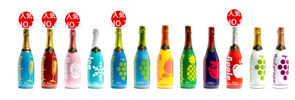 基本的には市販のスパークリングワインなど、お好みのものを用意すれば大丈夫ですが、貼りやすさを優先するなら、胴体がまっすぐな筒型のボトルがおすすめです。
