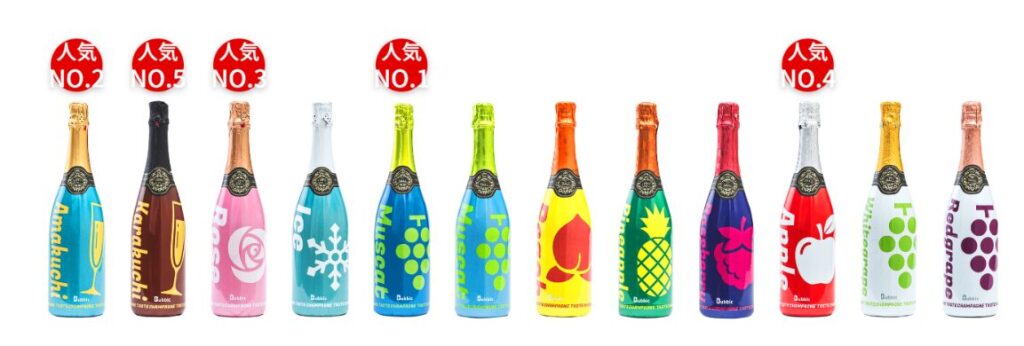 Bubbic(バビック)バビックではシャンパンの中身の味にもこだわり、13種類の豊富なバリエーションの中から好みの味を選べぶことができます。