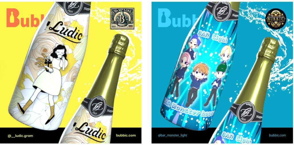 プロのデザイナーによる高品質なデザインは、全面フルラッピング方式の高画質でシャンパンボトルになります。